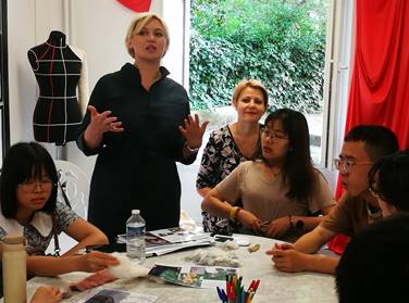 课堂学习中,巴黎时装学院的老师从欧洲立体裁剪、灵感来源选取、款式设计、颜色搭配等方面进行了系统的讲授。同时还安排了关于面料工艺的讲座,让同学们与这方面的专家进行面对面交流和讨论。通过以上教学活动,同学们真切感受到了国内外关于服装设计教学内容与教学方式的不同,也对欧洲现当代时装设计理念和时尚前沿动态有了更深入的了解。