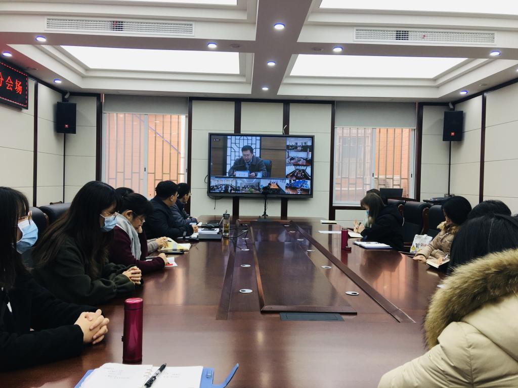 2020年12月24日,学校在望江校区明德楼召开基层党建工作总结会,校党委书记王建国、校党委副书记曹萍、郭勇以及学校相关单位负责人、全体专职组织员在主会场行政楼414参会。按照学校工作要求,学院党委刘晓虎书记、冯国涛副书记以及全体教工支部书记、学生支部书记在纺工附楼205会议室参加了分会场学习。本次会议由校党委副书记曹萍主持。