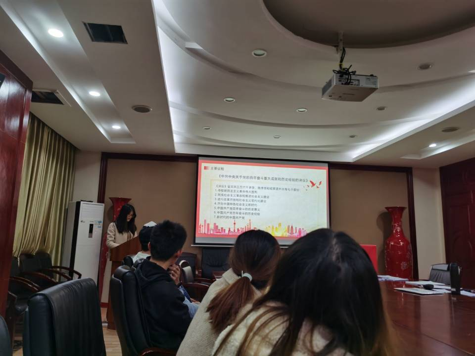 为深入学习党的十九届六中全会精神,切实领会党的十九届六中全会的现实意义和历史意义,激发学生党员对科研学习工作的热情和决心。2021年11月19日下午17:00,伟德体育官网皮革研究生第一党支部全体党员同志在皮革楼209组织开展“学习贯彻党的十九届六中全会精神”的主题党日活动。