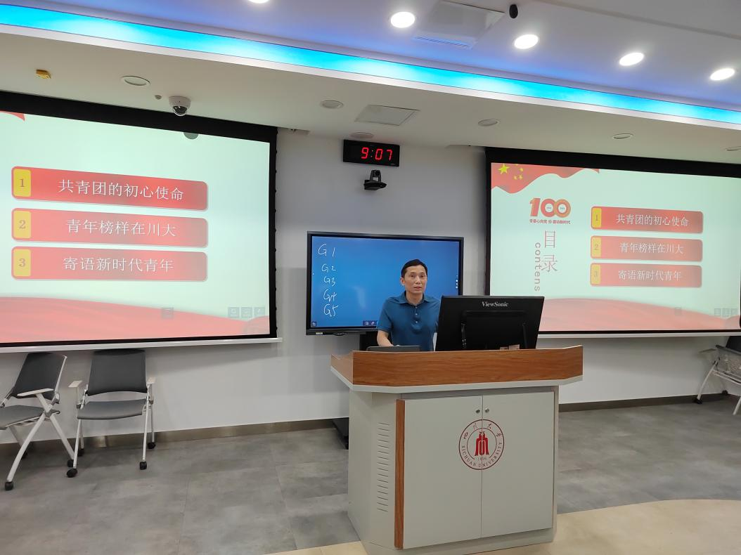 在本次专题党课中,李天富书记以习近平总书记在庆祝中国共产主义青年团成立100周年大会上的讲话为主题,从共青团的初心使命、青年榜样在川大、寄语新时代青年等三个方面进行讲授。首先,李书记与党员同志们一起回顾了共青团在新民主主义革命时期、社会主义革命和建设时期、改革开放和社会主义现代化建设新时期、中国特色社会主义新时代不同阶段的初心使命,指出共青团的初心使命就是“坚定不移跟党走,为党和人民奋斗”,并分享川大共青团与青年人在不同历史阶段不懈奋斗的发展历程与感人故事。随后,李书记列举了伟德体育官网在不同时期涌现出的一代代青年榜样,如张铨教授、林炜教授、郭俊凌教授、陈治军校友、李文琴校友、朱彬校友以及身边的李静雯同学、倪正航同学等的成长故事,他们都曾为学院的学科建设、专业发展、行业进步作出了巨大贡献,为身边同学树立了良好榜样,他们展现了轻工人在各历史阶段持之以恒地践行着共青团的初心使命。