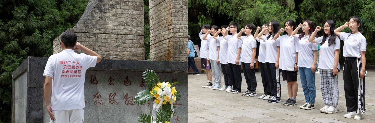 在纪念林下,全体成员认真聆听了“娄山红·一条腿的长征”主题微党课。在红军二战娄山关中,钟赤兵指挥部队在前线与敌人展开生死搏斗。激战中,他右小腿中弹负伤,却坚守前线不肯撤退直到红军占领遵义城。由于耽误了最佳治疗时间,加之当时手术条件极其简陋,半个月内,钟赤兵在无麻药的情况下进行了三次截肢,直至整个右腿从股骨腰部截去。就这样,一条腿的钟赤兵,以顽强的毅力活了下来并走完了万里长征。钟赤兵的故事令全体师生无不动容,大家敬佩钟赤兵对信仰的坚守,对他甘于奉献、不怕牺牲的革命精深深感染。