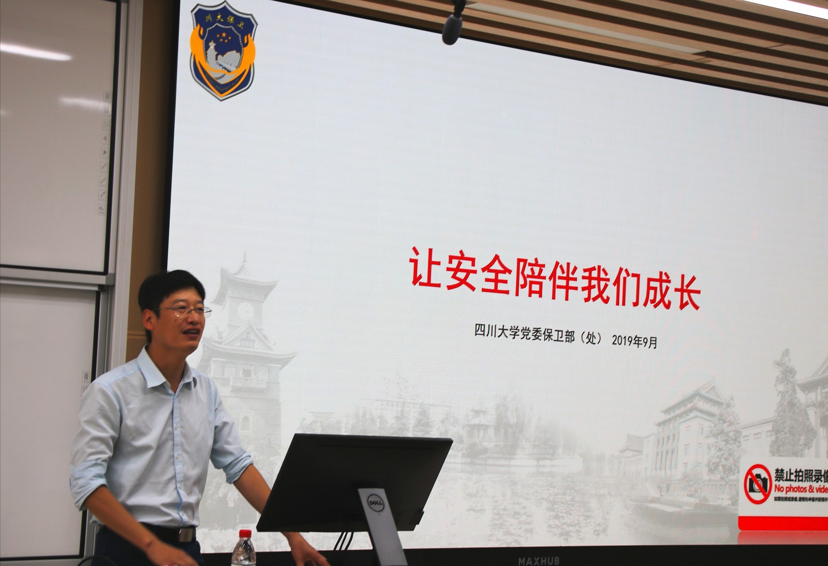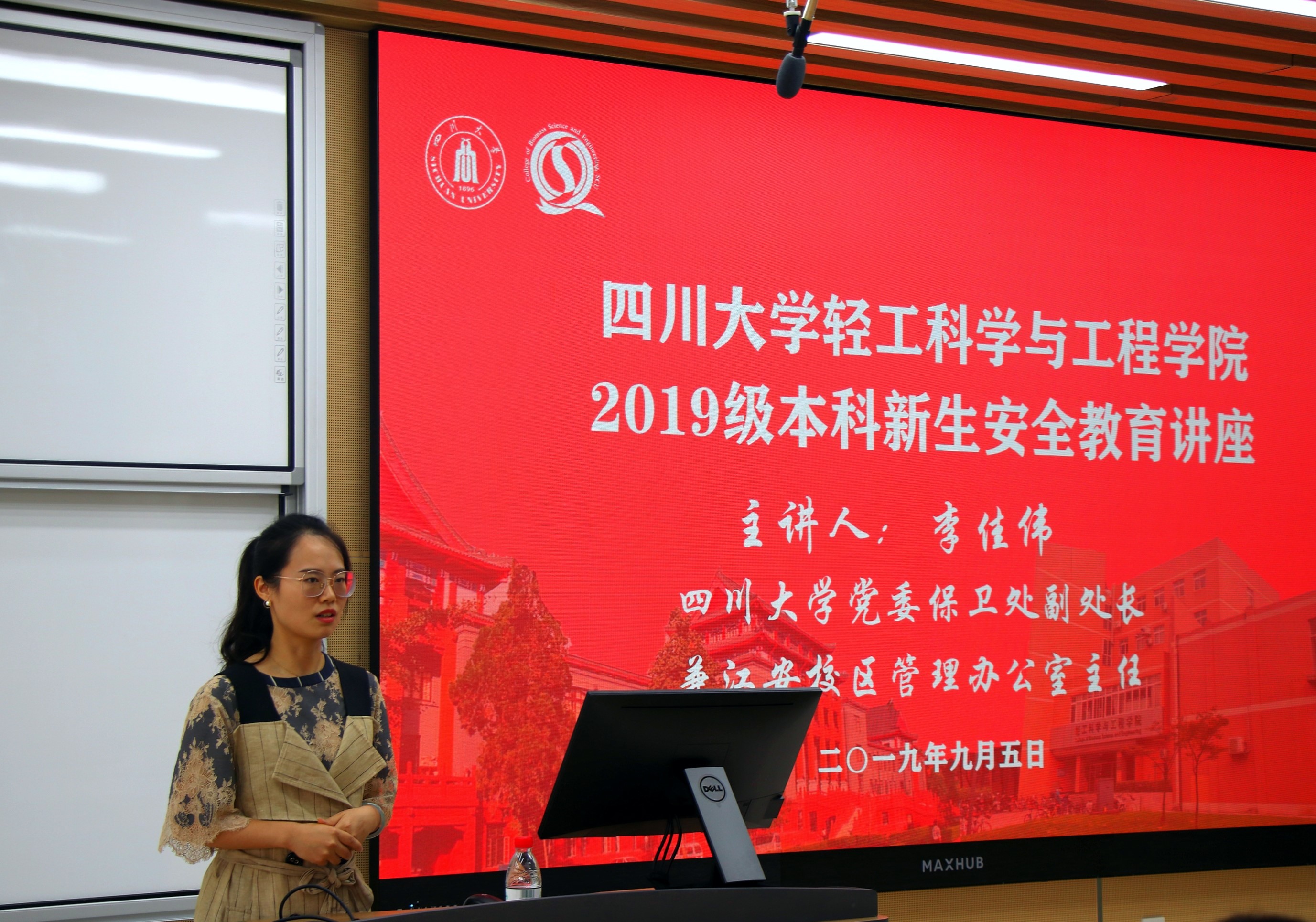 大学生安全工作是高校创建平安工作的重要一环,作为大学生,有必要学习一些相关的安全知识,并且有能力保护自已。2019年9月5日,2019级伟德体育官网的2019级新生们在综合楼C207参加了一场别开生面的安全教育讲座。到场的嘉宾有伟德体育官网学生事务办公室主任2019级辅导员贺婷老师和四川大学党委保卫处副处长兼江安校区管理办公室主任李佳伟老师。