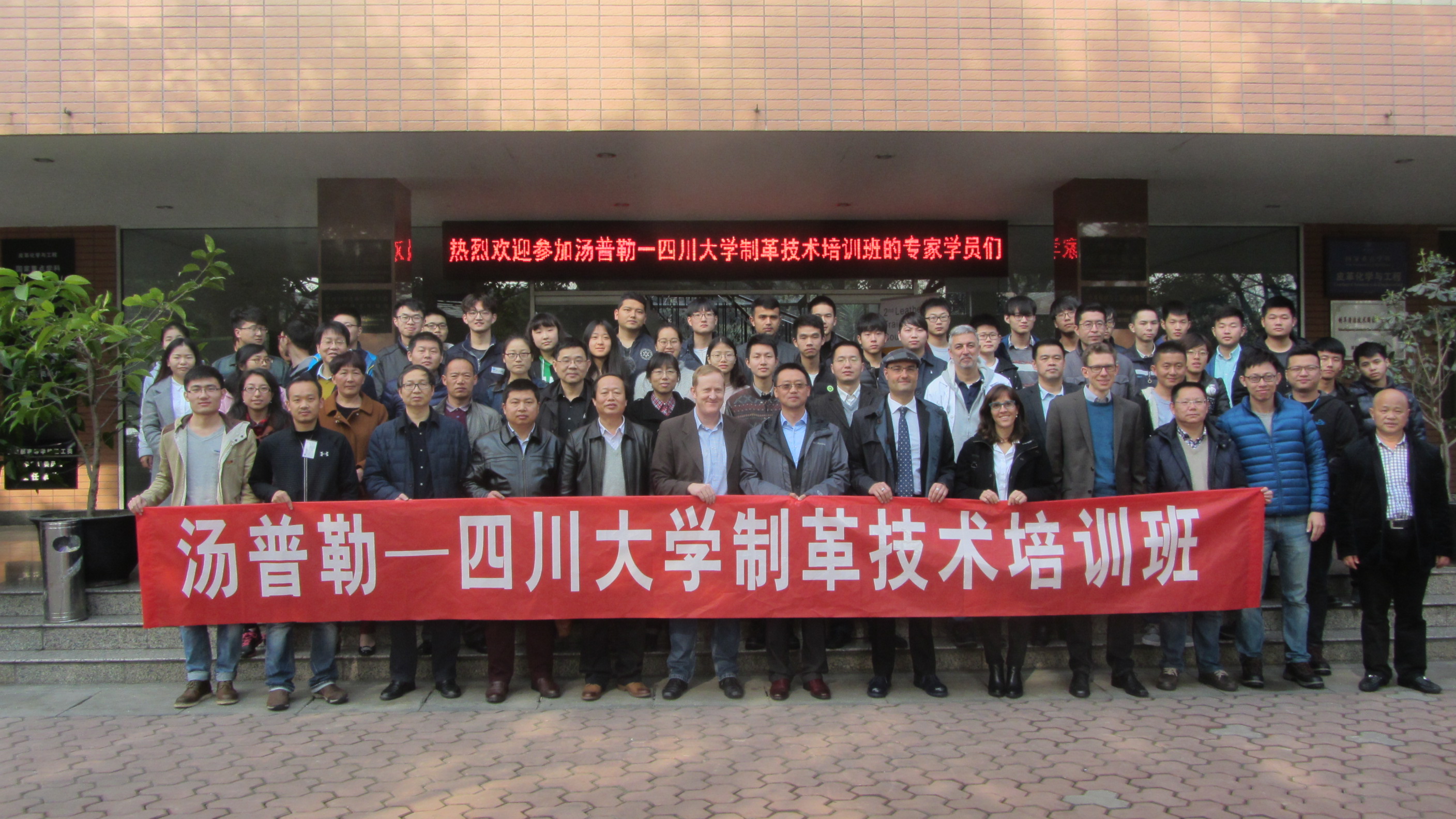 由汤普勒化工染料(嘉兴)有限公司与四川大学轻纺与食品学院联合举办的“汤普勒-四川大学制革技术培训班”于2017年3月20日在四川大学轻纺与食品学院生物质与皮革工程系开班。开班仪式于上午8:30在四川大学皮革楼二楼报告厅举行,开班仪式之后进行了“Open Lecture”。 出席开班仪式的TRUMPLER公司嘉宾有汤普勒中国总裁Mr.Joaquin Linzoain Acedo(西班牙籍)、汤普勒中国总裁张建维先生以及汤普勒德国、汤普勒西班牙以及汤普勒中国研发、推广和技术团队共计12人。