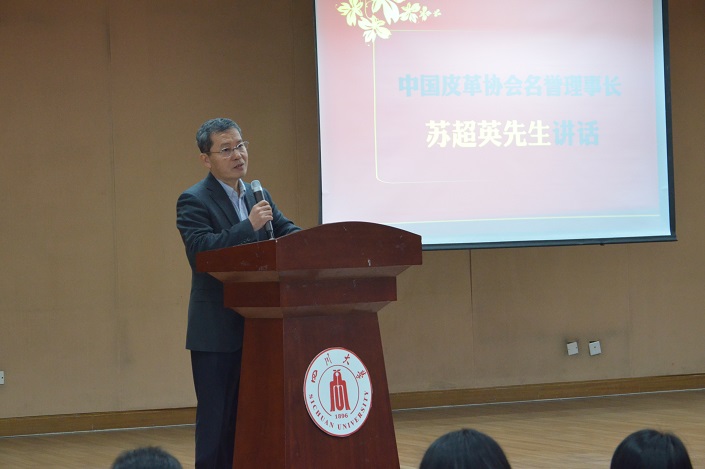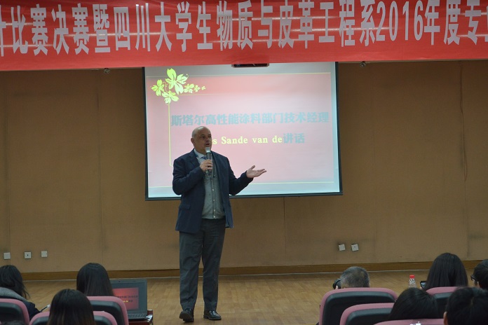 2016年12月9日,中国皮革协会奖学金、狮岭杯箱包设计比赛奖学金、BASF奖学金、斯塔尔奖学金、广州美多绿奖学金、德国司马公司创新奖学金、欣驰—博奥奖学金、吴建军助学金颁奖典礼暨第九届狮岭杯箱包设计比赛决赛在江安校区法学院报告厅隆重举行。受四川大学生物质与皮革工程系的邀请,中国皮革工业协会名誉理事长苏超英先生、德国司马化学(香港)有限公司皮革部中国区张建华经理、斯塔尔高性能涂料部门技术经理凯斯先生、斯塔尔广州技术服务中心高性能涂料实验室经理夏敏先生、斯塔尔广州实验室经理李艳女士、斯塔尔合成革应用技术专员李冠男女士、广州狮岭皮革皮具产业研究中心副主任罗杨先生、龙虹池干事参加了本次活动。出席本次颁奖典礼的学院领导有四川大学轻纺与食品学院院长、生物质与皮革工程系系主任何有节教授、生物质与皮革工程系副系主任彭必雨教授、张宗才教授、2016级轻化工程专业名誉班主任金勇教授、杨璐铭副教授、生物质与皮革工程系革制品设计教研室主任徐波老师以及学生工作组老师。生物质与皮革工程系全体获奖学生及2015级、2016级生物质与皮革工程系本科生参与了本次典礼。