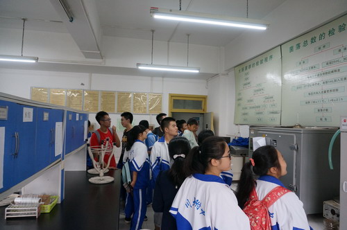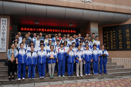 9月24日,四川大学食品工程系迎来了成都十二中“博士班”高中二、三年级的80多位同学,同学们首先观看了我院的宣传片,随后食品工程系钟凯老师、李欣蔚老师、何贵萍老师带领大家参观了食品分析检测实验室、食品微生物学实验室、烘焙食品工艺学实验室、罐藏食品工艺学实验室等食品科学与工程专业本科教学实验室,并为大家讲解了食品相关知识,让大家对食品专业有了一定的了解和认识。