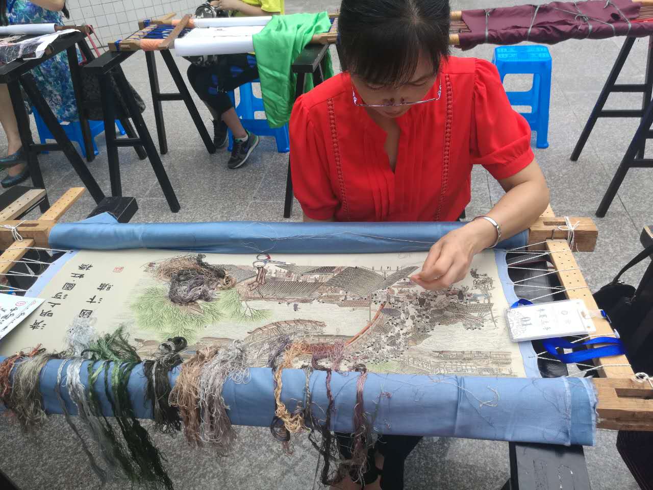 来自全国各地刺绣选手和刺绣爱好者近万人参加了本次艺术节。汉族、蒙古族、苗族、满族、彝族、藏族、瑶族的刺绣选手共80名参加了比赛。她(他)们带来了蜀绣、苏绣、湘绣、粤绣、汴绣、顾绣、蒙古刺绣、苗绣、麻柳刺绣、彝绣、藏族堆绣等23个国家级刺绣项目,这些绣品既有不同地域文化特色,又有不同的刺绣技艺和原料特点。在为期两天的比赛中,选手们现场展示了各自的刺绣技能。我院赵敏副教授与蜀绣亚太大师、国家级传人郝淑萍以及苏绣、湘绣、粤绣的国家级传承人一起担任了本次竞赛的评委。本次竞赛共评选出了5个金奖、10个银奖、15个铜奖。