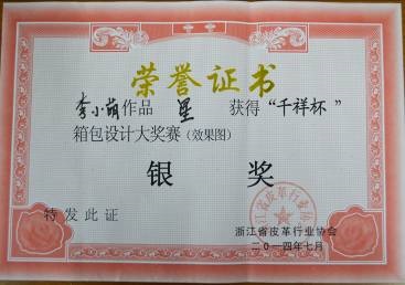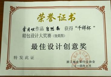 “千祥杯”箱包设计创作大奖赛由浙江省皮革行业协会和东阳市人民政府主办,大奖赛的宗旨是面向社会,重点鼓励各专业院校在校大学生、生产企业及箱包设计师参赛,是国内具有较大影响力的箱包设计专业赛事。(曾琦)