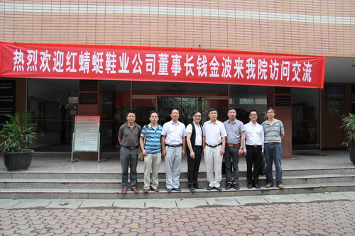 2012年8月18日,红蜻蜓鞋业股份有限公司董事长钱金波先生、浙江红蜻蜓鞋业股份有限公司大区总经理吕统沧先生等一行五人访问了制革清洁技术国家工程实验室和轻纺与食品学院,四川大学石碧院士、轻纺与食品学院院长何有节教授、制革清洁技术国家工程实验室副主任张宗才教授、范浩军教授、我院皮革系革制品教研室徐波主任等热情接待了钱金波董事长一行。石碧院士与钱金波董事长就院士工作站、科研合作等事宜进行了会谈,何有节院长介绍了我院红蜻蜓建设工程实践教育中心的进展情况,双方就人才培养等合作进行等交流。会谈结束后,范浩军主任、何有节院长陪同红蜻蜓客人在参观了制革清洁技术国家工程实验室和学院的校内实践教学基地。自2011年5月红蜻蜓和四川大学制革清洁技术国家工程实验室合作成立企业院士专家工作站以来,石碧院士、何有节院长、徐波主任、杨璐铭副教授等多次去红蜻蜓公司,进行技术上合作和对技术壁垒进行公关,陆续完成了多个研究项目。