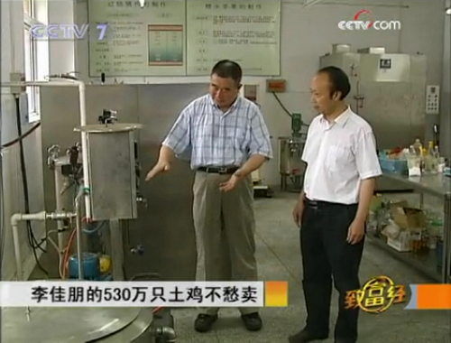 我院卢晓黎教授与企业合作项目受到央视关注和报道 四川颐康实业有限公司董事长李佳朋先生从2004年开始与我校合作,共同建立了产学研平台。在我院副院长卢晓黎教授及其科研团队的技术支持和共同努力下,完成了肉鸡深加工技术及产品开发项目建设,使企业取得了大的经济效益和社会效益。今年8月和11月,中央电视台7套节目“致富经”栏目,以“李佳朋的530万只土鸡不愁卖”为题,对此连续进行了专题报道。节目播出后,受到同行们的广泛关注。在此之前,四川省科技厅组织专家对该项目进行了科技成果鉴定,该项目在技术水平、产品形式等方面取得的创新性成果和效益,受到专家们的高度评价。该项目在建设过程中,各级政府也给予了很大的关心和支持,四川省科技厅计划2010年对“肉鸡产业链关键技术研究与示范”科技支撑计划项目,拟再投入高额资金支持发展,我院卢晓黎教授继续担任该项目加工子项目的负责人。