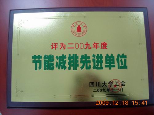 我院获“四川大学节能减排先进单位”三等奖 为认真贯彻落实国家发改委等十七部门制定的《节能减排全民行动实施方案》和《四川大学水电气管理办法(试行)》的文件精神,我校开展了“节能减排,建设节约型校园”活动。这项活动一方面继承和弘扬中华民族勤俭节约的传统美德,另一方面有利于保护自然环境,实现人与自然的和谐发展,也是社会主义现代化建设进程中的迫切任务。 学院工会在校工会和学院党政的领导下,高度重视节能减排工作,围绕以“创建节约型学院、减少排放、科学发展”为核心,结合学院的实际情况,开展了行之有效的工作,师生的节能减排意识不断提高。 2009年12月17日,学院工会召开表彰大会,授予我院“四川大学节能减排先进单位”三等奖荣誉称号。在此激励之下,我院将不断总结节能减排的经验,再接再厉,为建设资源节约型校园不懈努力。