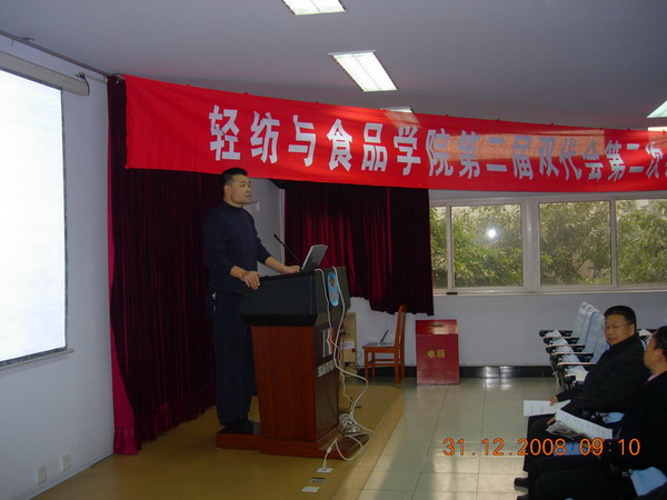 轻纺与食品学院第二届双代会第二次会议隆重召开 2008年12月31日,轻纺与食品学院第二届双代会第二次会议隆重召开。学院双代会代表和特邀代表出席了此次会议。学院党委书记刘学文教授代表学院党政向全院教职员工表示最亲切的慰问和最崇高的敬意!并致以良好的祝愿!预祝大会取得丰硕成果,圆满成功!希望全院教职员工携起手来,紧紧围绕学校的中心工作,认真贯彻落实“十七大”精神,高举旗帜,坚定不移地解放思想、深化改革,在科学发展观的引领下,以创新精神加强和改进党建思想政治工作为保证,以提高质量为核心,以人事分配制度改革为龙头,以改革创新管理体制和运行机制为重点,以调整优化配置资源为抓手,坚持全心全意依靠教职工办学的基本方针,促进学院各项工作又好又快的发展,再上新台阶,为实现我院团结、和谐、高水平研究型学院的宏伟目标而努力奋斗! 与会代表听取和审议了学院院长陈武勇教授代表所作的“学院工作报告”和“财经工作报告”。“学院工作报告”总结2008年学院的教学、科研、学科建设、对外交流、师资建设、学生等方面的工作,实事求是,客观全面,真实地反映了学院的各项工作情况。希望以后的工作中,针对所存在的不足提出行之有效的措施,不断缩小差距,推进学院各项工作又快又好地发展。“财经工作报告”全面地反映了目前学院经费的下拔、分配和使用情况,认为学院的财经制度比较完善,财务公开透明,经费分配和使用基本合理。希望继续管好用好现有财力,压缩不必要的开支,将有限的财力用到最需要的地方,更好地为学院的发展服务。 大会还听取了学院工会主席肖凯所作的“双代会工工作报告”,该报告回顾了2008年双代会和工会的工作,特别在抗震救灾工作、院务公开、文体活动和教职工福利中发挥了巨大的作用。希望能进一步发挥双代会和工会“民主管理、民主监督和民主决策”的作用,促进学院的实现新的跨越;并努力成为教职工的贴心人,发挥桥梁纽带作用,为教职工多办实事、好事。 大会进行了分组讨论,与会代表踊跃发言,积极为学院的发展和改革献计献策,提出了合理化建议和意见。分组讨论后,三个小组的召集人刘晓虎、廖隆理和陈衍夏分别作大会交流座谈。 最后,全体代表一致通过“轻纺与食品学院第二届双代会第二次会议决议”。大会在和谐、热烈的气氛中圆满结束。