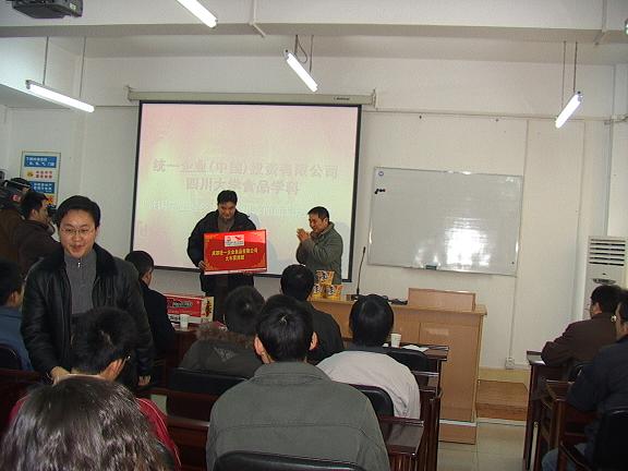 中国食品科学技术学会、世界拉面协会中国分会统一企业寒冬送温暖――为贫困学生提供返乡火车票 2007年1月23日,四川大学和统一企业(中国)投资有限公司在四川大学纺工楼举办了资助贫困学生的仪式,对20名贫困大学生进行“雪中送炭”。此项活动是由中国食品科学技术学会世界拉面协会中国分会牵头并与企业、高校共同发起的为高校部分贫困学生提供返乡火车票和捐赠方便面的爱心活动,目的是帮助因经济暂时困难的食品专业大学生能够回家享受团圆亲情。