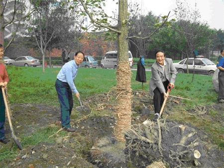 皮革校友捐赠“校友林” 在四川大学大学110周年校庆活动中,部分皮革校友筹集了“校友林”资金,专门用于在皮革楼前植树造林,美化校园环境。10月9日,这项工作已得到落实。73级校友陈武勇、李开华,75级校友王坤余,78级校友张宗才、陈彦,85级校友戴红等代表众多校友,在皮革楼前亲手种植了珍稀树种--银杏树。银杏树虽历尽沧桑,依然顽强生长,表现出旺盛的生命活力;银杏树茂盛多果,象征着我们的教育事业硕果累累、学子满天下。(陈玲)