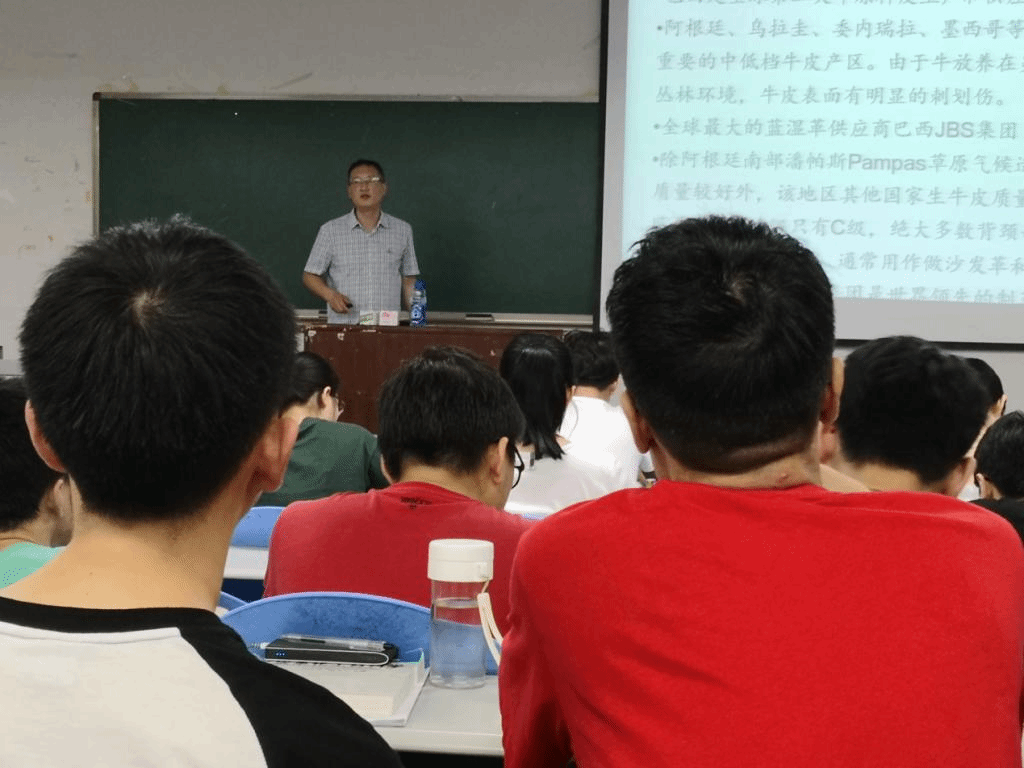 2018年7月2日-5日,轻纺与食品学院轻化工程(制革工程)专业校外专家课程《制革应用中的创新与实践》在四川大学纺工副楼205正式开课。本次课程邀请了成都培根皮革科研所创始人吕欣为同学们讲授制革应用中的技术和材料创新及实践;本课程由轻纺与食品学院教学副院长彭必雨教授主持,张春晓副研究员担任助教。