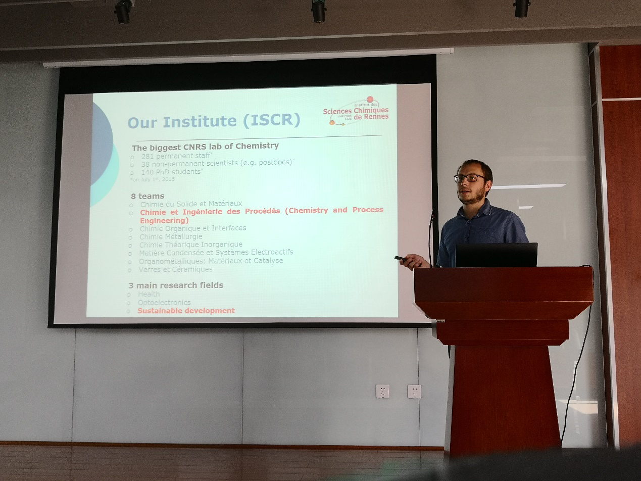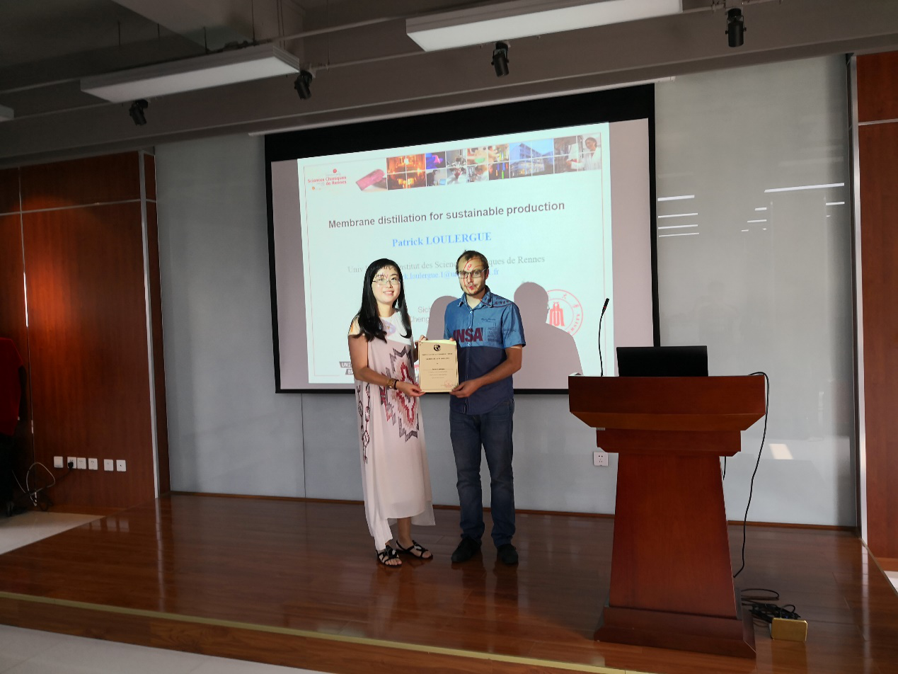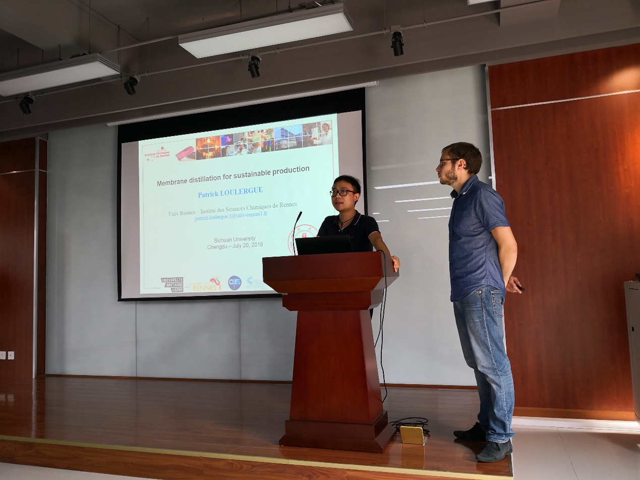 2018年7月20日上午,法国雷恩大学Patrick Loulergue 副教授应邀访问四四川大学轻纺与食品学院,并在皮革系金垚副教授的主持下作了题为“Membrane distillation for sustainable production”的学术报告。这也是自今年5月开讲的“学院论坛”系列报告之一,该论坛的负责人杨璐铭老师特为Patrick Loulergue副教授颁发了相应证书。