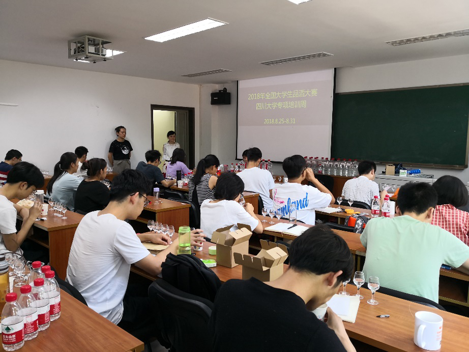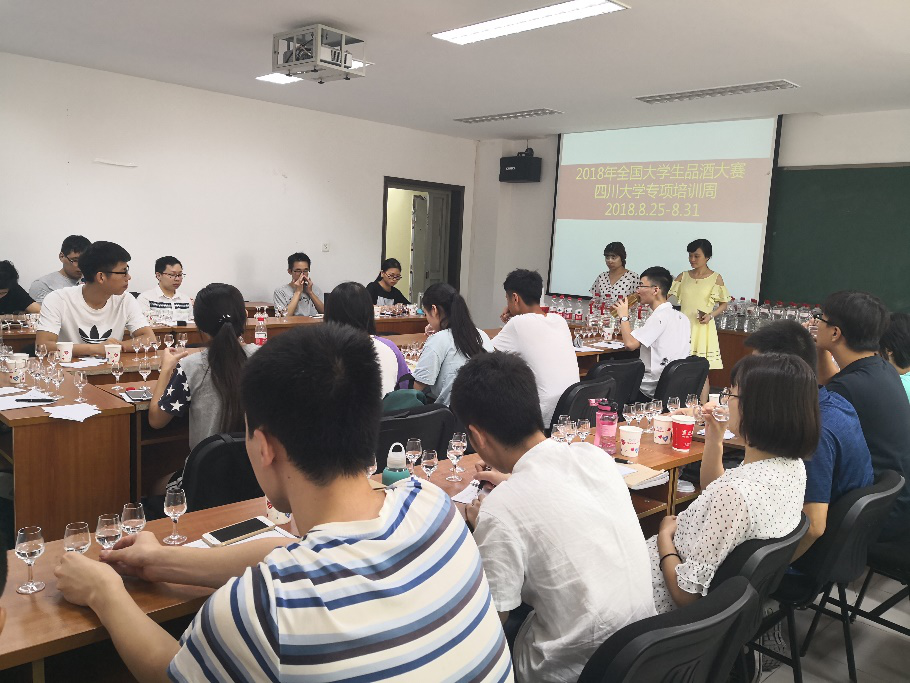 为弘扬中国文化,继承和发扬中国白酒文化,提高青年一代对中国传统白酒的认识,由中国酒业协会主办,舍得酒业股份有限公司承办的“舍得酒业杯”2018年全国大学生品酒大赛四川赛区初赛将于9月26至28日举行。为了更好备赛,我院轻工生物技术方向的学生从2018年8月25日开始,接受了为期一周的白酒技能专业指导和培训。本次培训由泸州老窖有限公司与轻工生物技术教研室主办,泸州老窖有限公司邵燕和蔡亮两位国家白酒评委担任培训师。