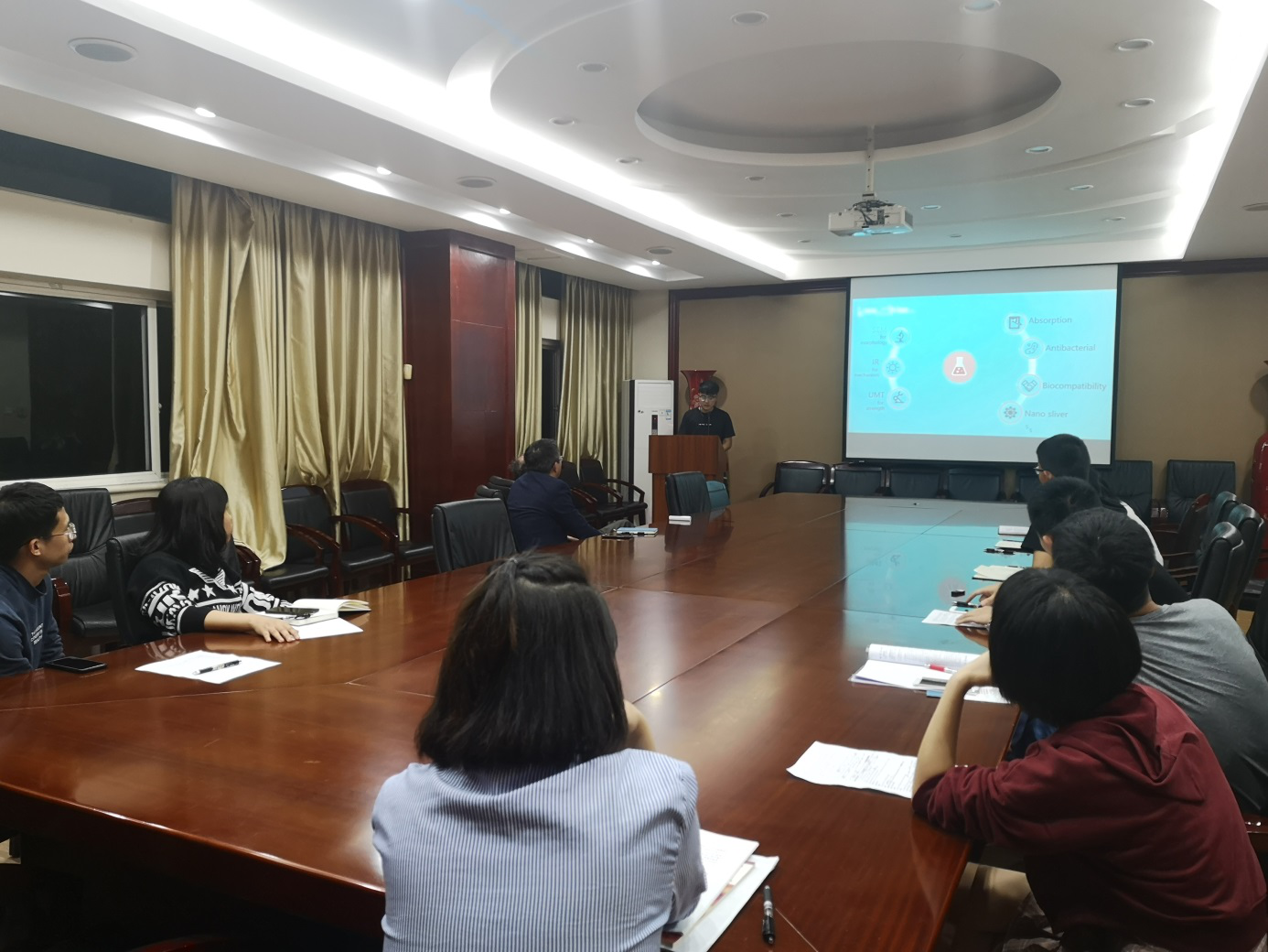 在本次活动中,我院4名同学分别做了题为Preparation of ferrocenyl hydrogels(刘雄,2018级博士)、Preparation of gold nanoparticle hydrogels(龙燕茹,2017级硕士)、Research Progress of hydrogel(何恒曦,2018级硕士)、Preparation and properties of quaternary ammonium ferrocene-based polymers(凌强君,2015级本科生)的英语科研报告。Didier Astruct院士针对每位同学报告的内容仔细询问,提出非常宝贵的意见和建议,并与在座的老师和同学进行深入地探讨和交流。通过Didier Astruct院士的指导,同学们进一步厘清了各自研究课题的思路,认识到研究工作中存在不足,同时提高了科研的热情,开阔了国际视野,增强了国际合作意识,提升了英语口语表达水平,获益匪浅。
