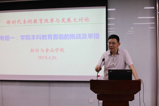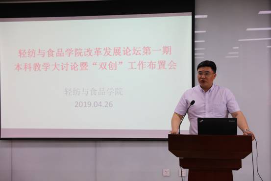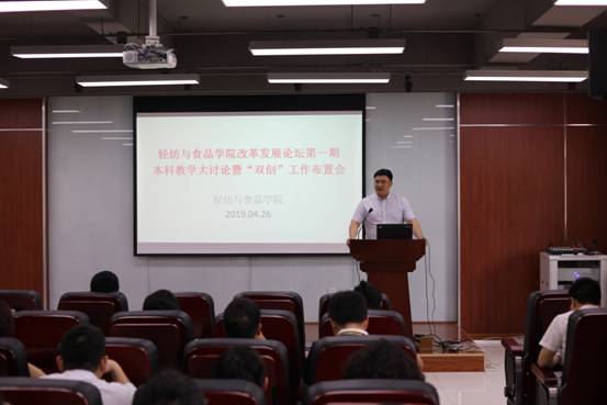 2019年4月26日下午,学院在皮革楼215报告厅,成功举办首期改革发展论坛——本科教育改革与发展大讨论及“双创工作”布置会,全院教职员工参加了本次大会。