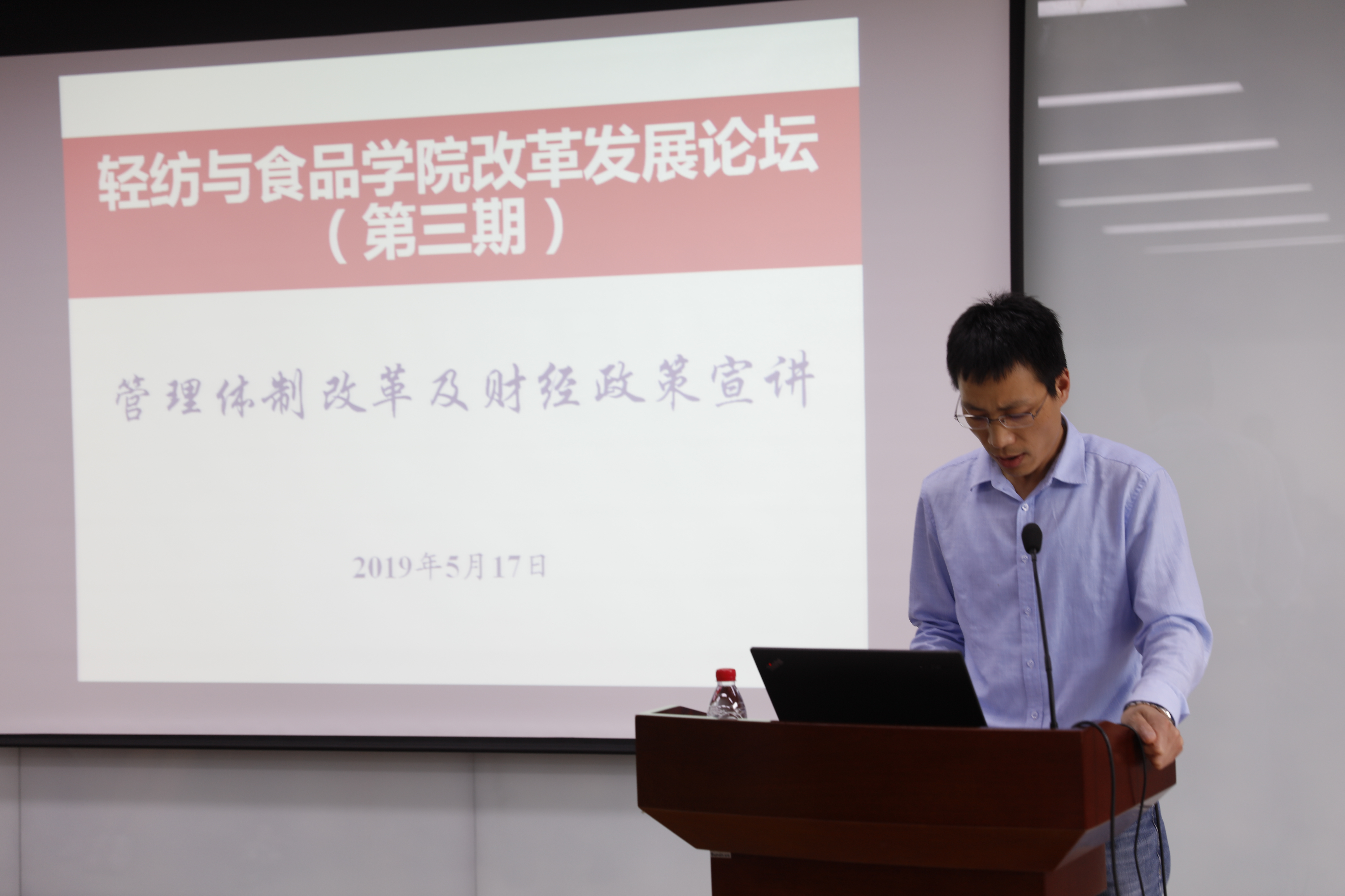 2019年5月17日下午,学院在皮革楼215报告厅,成功举办改革发展第三期论坛——学院管理体制改革大讨论及财经政策宣讲,全院教职员工参加了本次大会。