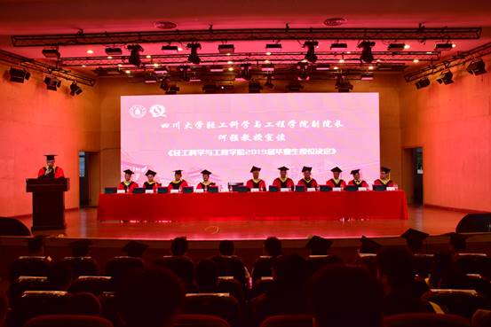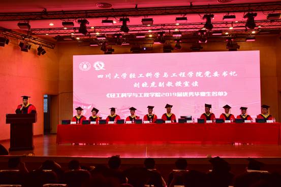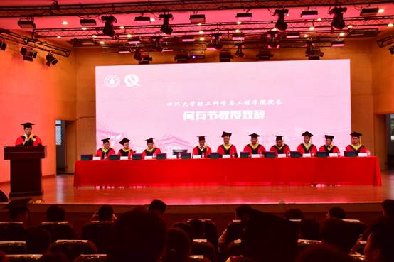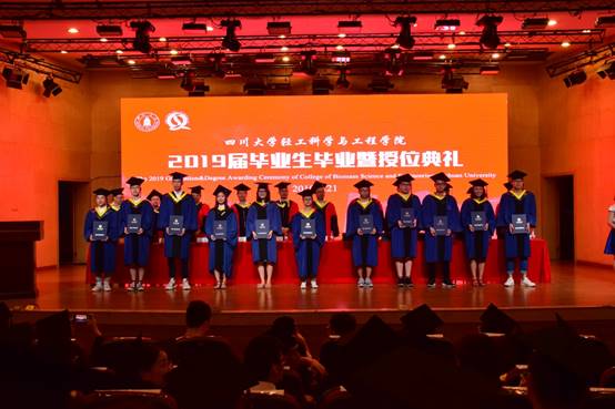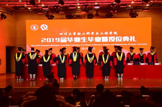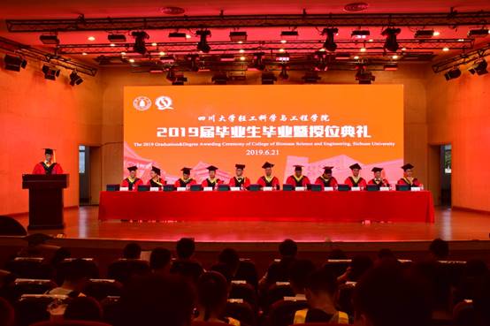 四川大学副校长梁斌教授,伟德体育官网学位评定分委会副主席、副院长何强教授,学院党委书记刘晓虎副教授,学院学位评定分委会委员、教授委员会委员何有节教授、彭必雨教授、单志华教授、朱谱新教授、李国英教授、周荣清教授、金勇教授、阎斌教授出席典礼并在主席台就座。教师代表、校友代表、学生家长代表、学生代表以及2019届全体毕业生参加了典礼。典礼由学院党委副书记冯国涛主持。