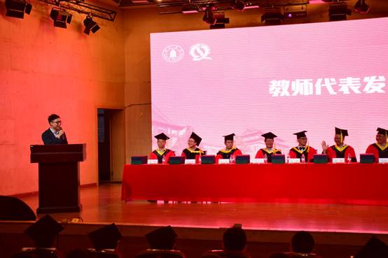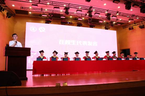何有节院长代表学院党政,向圆满完成学业并获得学位的174名本科生、88名硕士研究生、18名博士研究生表示热烈祝贺,向为同学成长付出心血的所有教职员工、学生家长表示感谢。何院长回顾了2019届毕业生从进校到现在与学院的共同成长和健康快速的发展。为同学们指出新时代为同学们创造了广阔的发展空间,中华民族的伟大复兴为同学们指明了奋斗的方向,相信大家能谱写辉煌的人生篇章。同时何院长也提出了三点希望,希望同学们志存高远、回馈社会;脚踏实地、立足平凡、认真工作;也希望同学们常回家看看。最后,何院长祝愿全体毕业生在人生新的征途中,找准定位,抓住机遇,在新的岗位上创造出无愧于伟大时代的辉煌业绩。