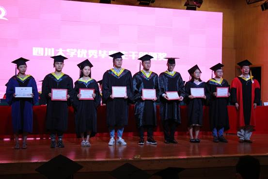 (何有节教授为四川大学优秀毕业生干部代表颁发证书)