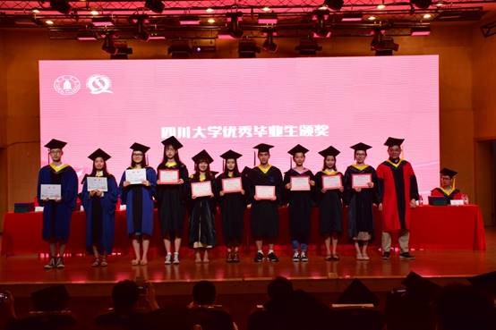 (彭必雨教授为四川大学优秀毕业生代表颁发证书)