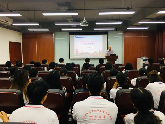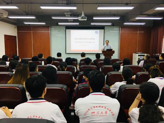 首先,何有节院长代表学院对来自全国各高校的43位营员表示热烈欢迎,并对为本次夏令营举行付出辛勤努力的各位老师表示感谢。之后,何强副院长向同学们介绍了四川大学的历史概况,并代表学院介绍了我院各学科及各专业的整体情况、高水平科研平台、师资队伍、研究生学位点设置、学科和专业建设所取得的成果、教育教学改革工作、教学科研水平、与国外名校联合办学、学术交流与合作,以及我院优秀学子的科研成果和学生科研活动获奖等。最后,何强副院长以“成都是一座来了就不想走的城市,川大轻工一直在等你”为结语,欢迎大家到来。