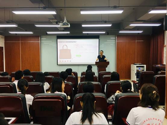 在开营仪式结束之后,举行了本次夏令营的首场专家报告。本次专家报告有幸邀请到2019年四川大学小班化教学比赛网络互动教室组(理工医)一等奖获得者、生物质与皮革工程系金垚副教授。金老师以生物质科学与工程学科介绍为主题,抛出问题“为啥爱马仕大象灰能贵出天际?”、“为啥国宴饮用国窖或1573?”、“为什么来成都?”,以这三个贴近同学们生活的问题着手,和同学们一起探讨生物质,探讨学院各专业的特点,带领同学们更进一步了解学院师资及科研方向,同时以自己的亲生经历和科研体会向同学们分享了“科学之美”。