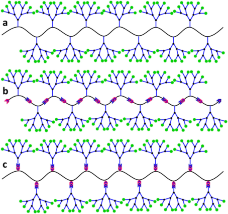 树枝化聚合物(Dendronized Polymers)是由线形的聚合物主链和高度枝化的树枝状侧链结构单元组成。通过控制树枝状单元的结构或代数以及与聚合物主链之间的距离,可以从分子层面调控这类高分子的构型和柔顺性等性质。树枝化聚合物具有高度的几何对称性,分子内有空腔,表面存在大量的官能团,分子本身是纳米尺寸等特殊性质,已经成为催化载体、纳米材料、载药、生物医学和光电子材料等领域的研究热点之一。