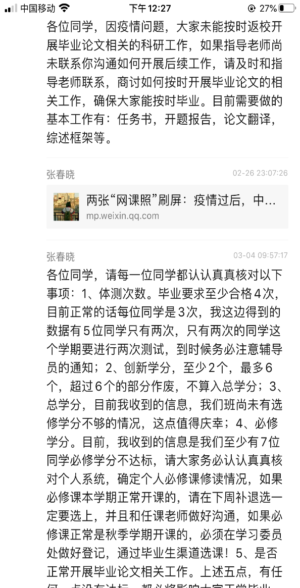 张春晓老师就学生顺利毕业进行指导