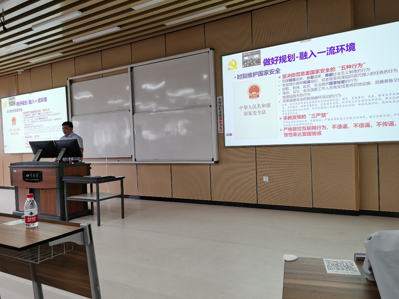 其次,刘书记还建议新同学们要定位一流发展坐标,明确努力方向,落实当前行动,尽早融入一流人才培养的校园文化氛围。最后,刘书记对2020级新同学提出了四点希望:一是要做好大学开篇,尽快完成角色转变,积极适应大学学习、生活;二是要胸怀大志,并脚踏实地,一步一个脚印走好人生每一步;三是要处理好自由和规范之间的关系。在大学相对自由的环境中,一定要规范自己的行为、养成良好的习惯,加强自律,把握好自己的人生方向;四是要有一颗平和与包容的心态,处理好同学、朋友、师生之间的人际关系,让自己的学习能力、创新能力提高的同时,拥有良好的人际交往能力,为自己以后的人生发展不断积累宝贵的经历与资源。