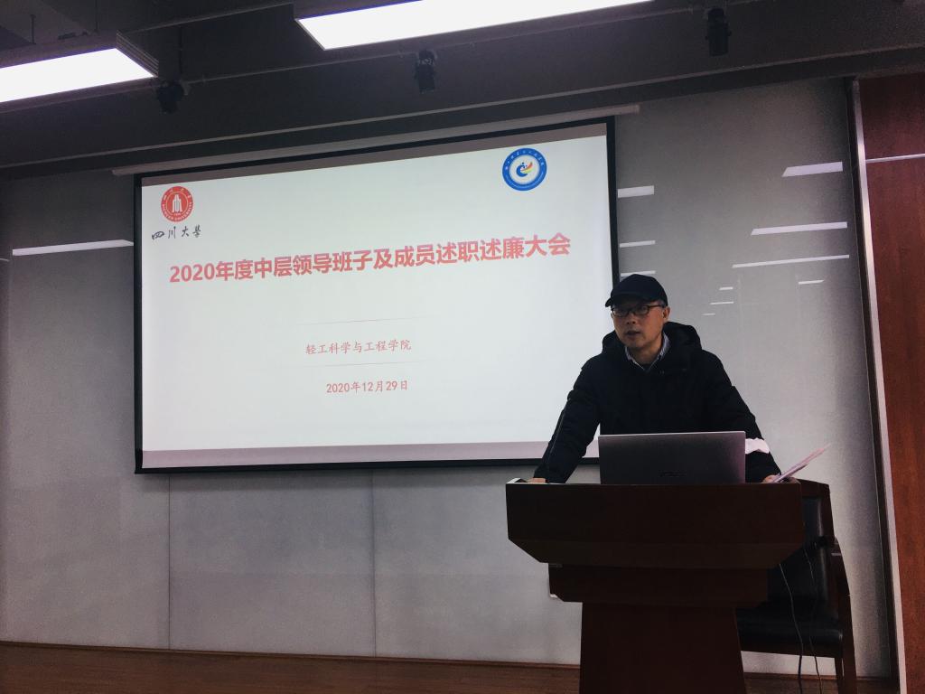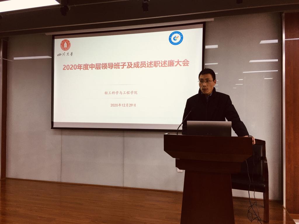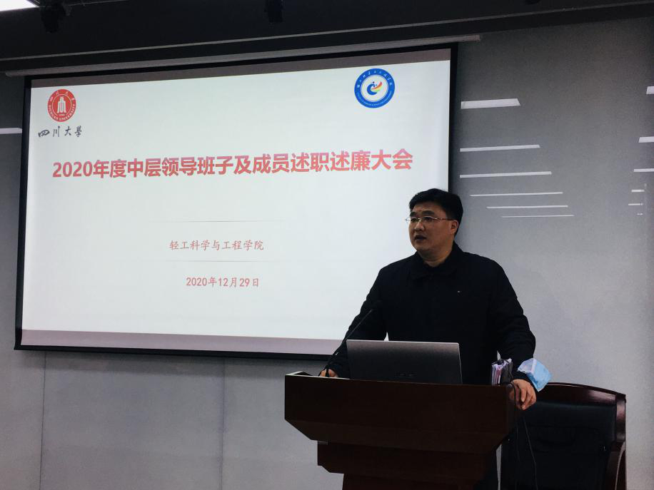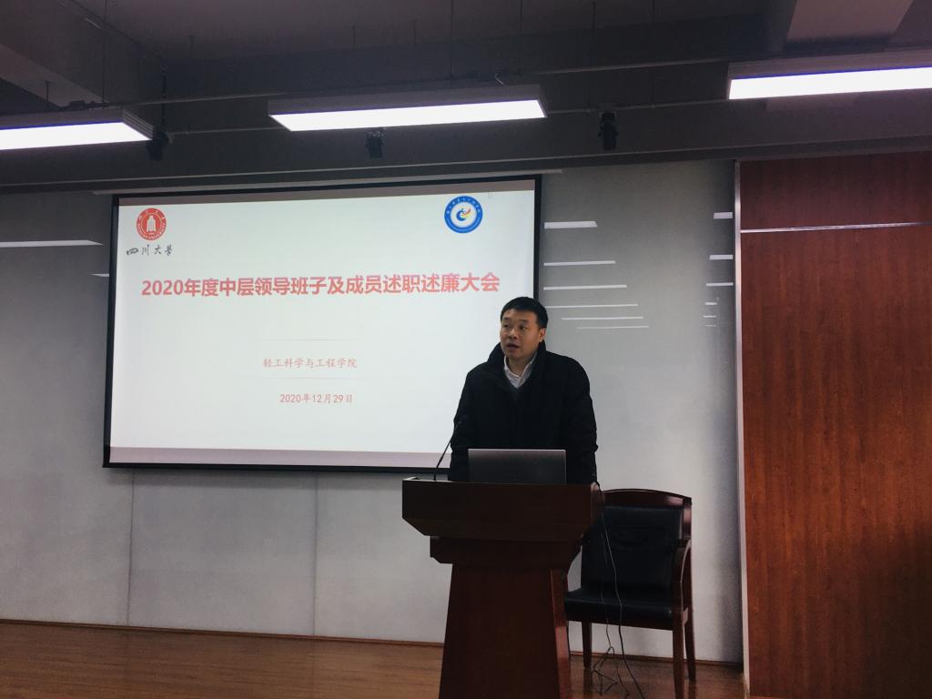 2020年12月29日上午,伟德体育官网在皮革楼215报告厅,召开学院领导班子及成员2020年度述职述廉暨民主测评大会。大会由学院党委书记刘晓虎主持,全院教职员工参会。
