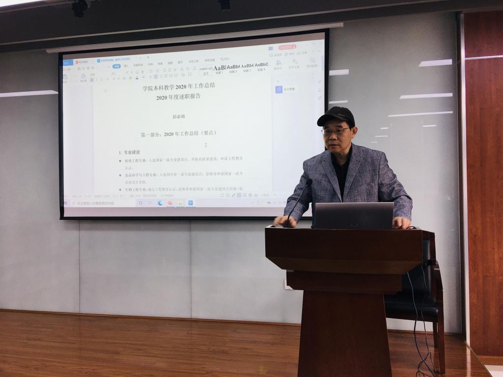 彭必雨副院长从专业建设、招生宣传、课堂教学、课堂建设、教材选用与建设、教学改革成果及报奖等本科教学相关工作进行总结和汇报,并提出明年工作开展计划。