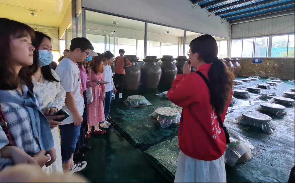 四川眉山“中国泡菜城”是全国第一个规模最大、功能最全、工艺最新的泡菜产业园区,规划面积17.94平方公里,汇聚以泡菜为代表的传统发酵食品,调味品等数十家企业,园区企业年产值已逾300亿元。川大团队上午首先调研了惠通食业有限责任公司,参观了乌江榨菜自动化加工生产线,由衷感叹传统发酵食品生产与现代智能化生产技术结合后的跨越式发展;考察了老坛子食品有限公司,参观了泡菜老母水古法发酵制作技艺,被我国传统发酵食品生产技术的博大精深所吸引。随后团队参观了中国泡菜博物馆,它是全国唯一的以泡菜为主题的博物馆。通过讲解员系统全面的讲解,同学们了解到中国泡菜的起源、泡菜文化与泡菜产业发展历程,深刻到发酵食品传统加工技术的发展与进步不仅是制作技术的延续和拓展,更是中华文化的传承。