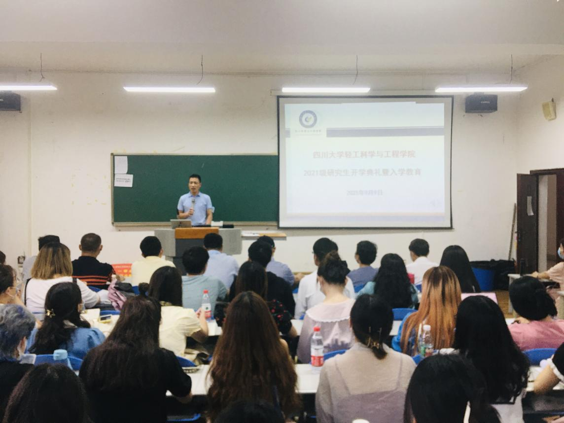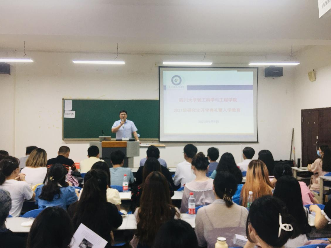 院长何有节教授从使命与担当、四川大学近年取得丰硕成就、学院研究生培养、学科建设与科学研究等方面向2021级同学做了详细全面介绍,勉励同学们踏踏实实做人、认认真真做学问,德智体美劳全面发展。