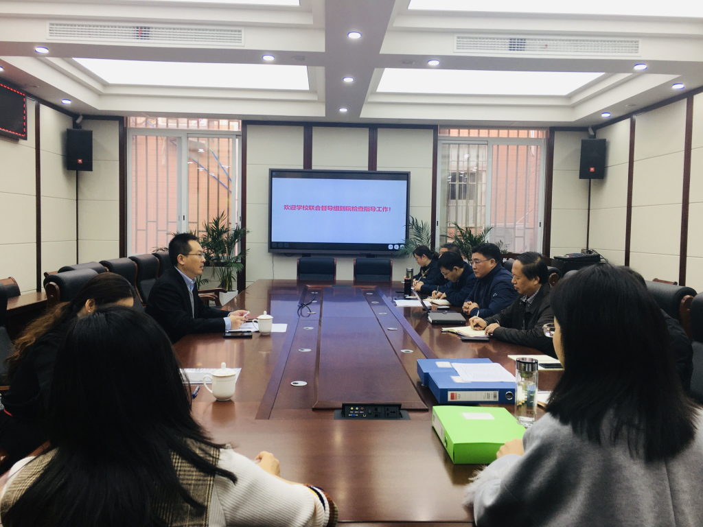 2021年10月29日,学校党史学习教育第五督导组组长、学工部陈森部长等来我院现场指导工作。学院党委刘晓虎书记、何有节院长、冯国涛副书记、教工党支部书记、教师代表等在纺工附楼205会议室出席会议并接受督导。