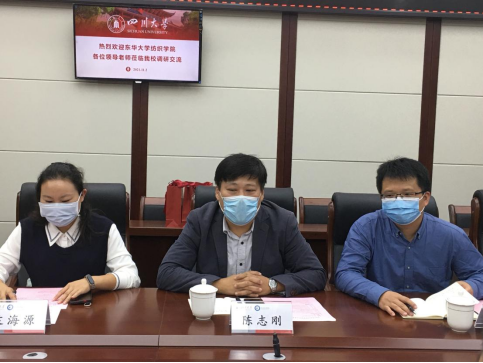 何有节院长代表学院对陈志刚副书记一行表示热烈欢迎,并回顾了与东华大学相关院系交流合作的渊源,希望东华大学纺织学院与我院进一步加强交流与合作,共同为新工科人才培养出谋划策。