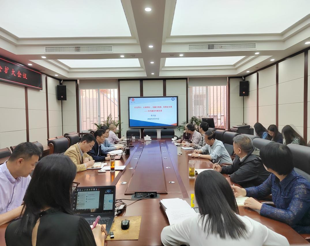按照《四川大学2022年全面从严治党工作要点》及2022年党风廉政教育宣传月活动相关要求,学院于4月11日上午在纺工附楼205会议室召开2022年全面从严治党暨党风廉政教育宣传月工作布置会。学院全体班子成员、两委委员、系所负责人、教工党支部书记、科级干部、辅导员和党政办相关人员参加本次会议。会议由学院党委副书记兼纪委书记冯国涛老师主持。