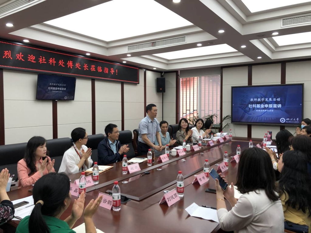2022年5月27日下午,为促进教师科研能力提升,指导老师积极申报各类社科项目,我院联合四川大学社会科学研究处在四川大学望江校区纺工附楼205会议室开展了主题为“社科基金申报宣讲”的教师科研能力提升活动。本次活动特别邀请了四川大学社会科学研究处傅其林处长、学院党政领导、服装与服饰设计系及学院学工组三十余位老师参加了本次活动。