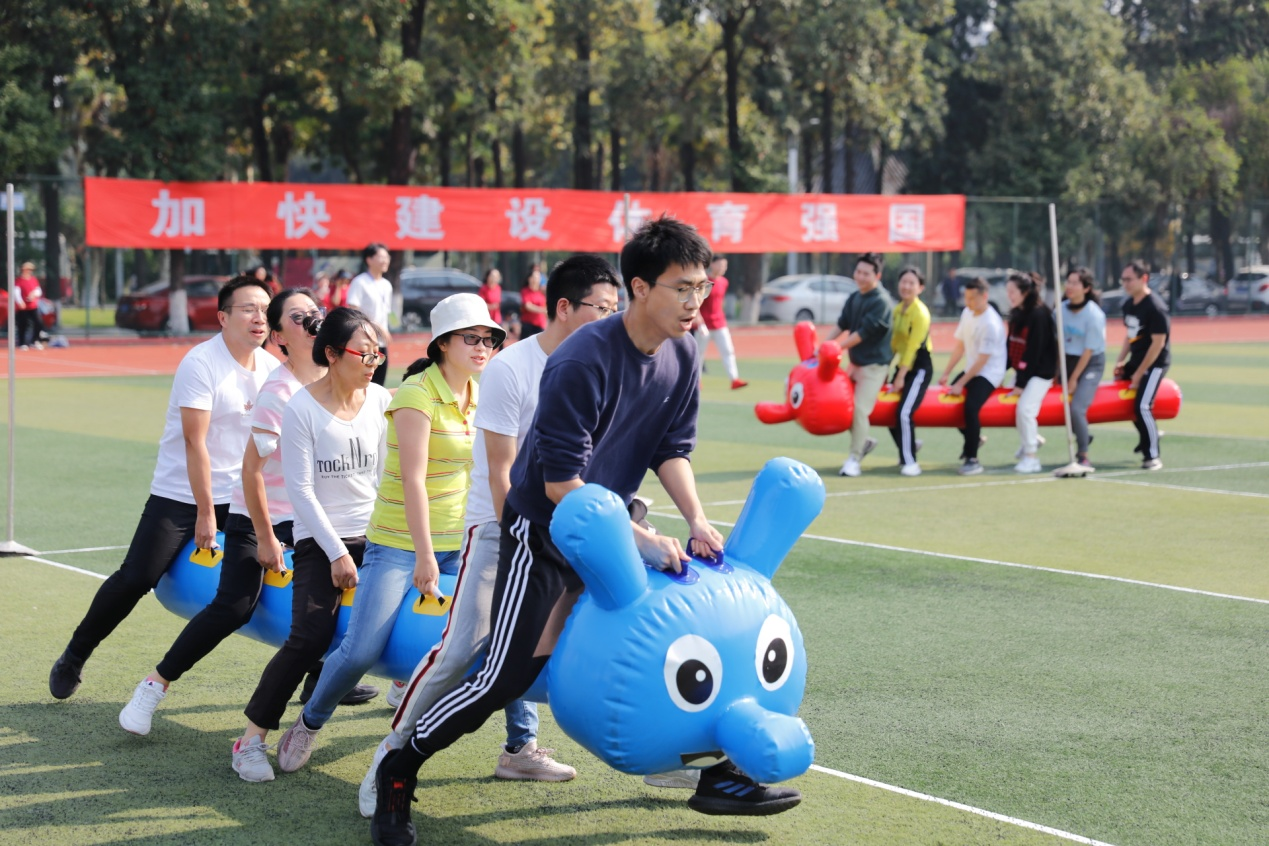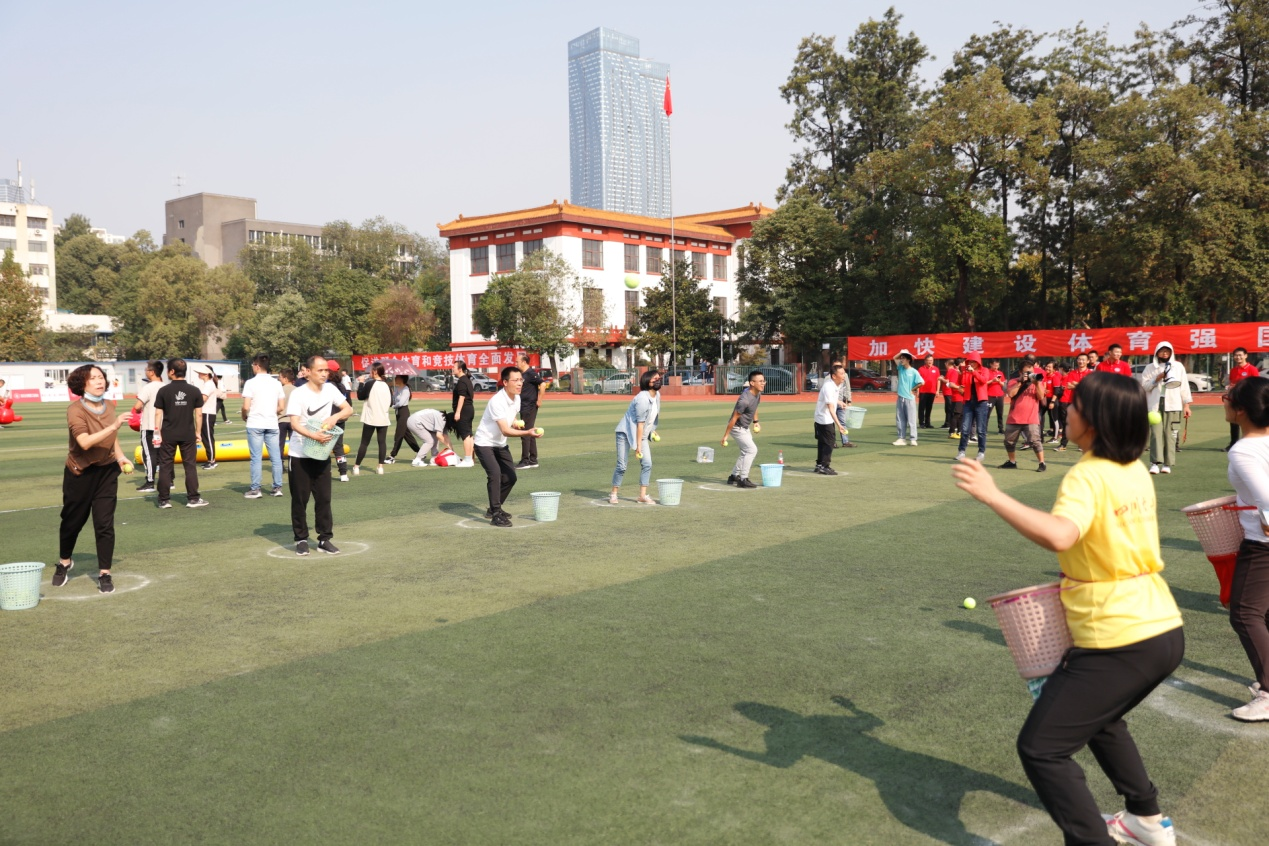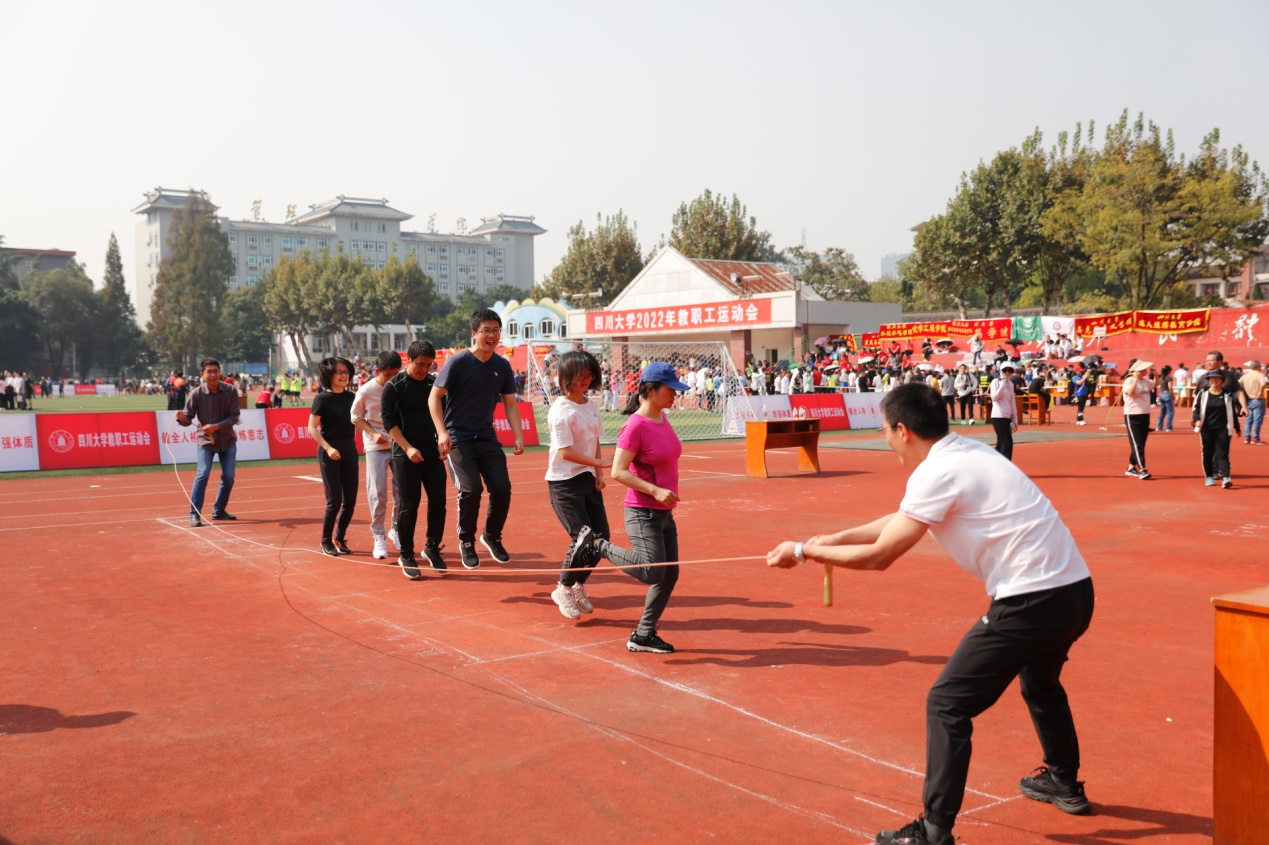金风送爽,丹桂飘香。10月21日,四川大学2022年教职工运动会在望江校区东区体育场举行。本次教职工运动会比赛项目丰富,融竞技与趣味为一体,包含100米短跑、立定跳远、跳绳、实心球、铅球等个人项目和毛毛虫竞速、抛球入框、绕杆射门等集体项目。在学院党委李天富书记、彭必雨院长和工会陈胜主席带领下,伟德体育官网47名教职工参与了86人次的比赛,与全校42个单位的运动健儿们同场竞技,展现了轻工人团结进取、奋力拼搏的精神。