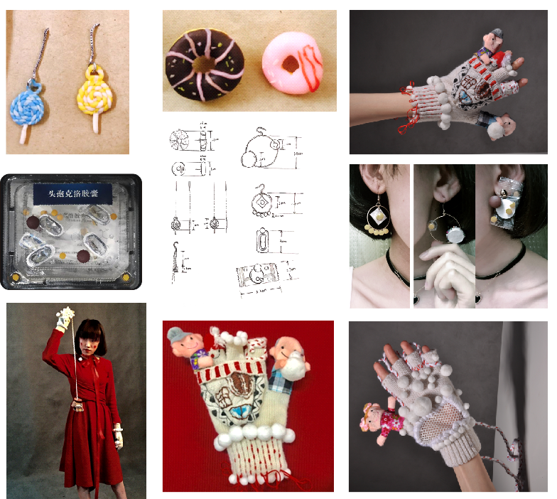 本次饰品综展的作品有2018“绘世杯”文创设计大赛优秀作品暨服饰配件课程优秀作品、2017春蕾川大的饰品、川大教改八期“与项目制相结合的数字化课程建设”服饰配件方向的成果、第四届互联网+“茴香”味记忆文创设计作品等。其中,第四届互联网+“茴香”味记忆文创设计作品,以食物入设计,构思奇妙,可吃可穿,回味无穷。每张作品的海报都是川大教改八期“与项目制相结合的数字化课程建设”与春蕾项目相结合、服装CAD课程内容与服饰配件课程相结合的成果,使用了PS、CDR等软件将效果图、作品成品、创意以数字化的方式呈现并保存,可用于线上与线下的打印和展示。本次综展的饰品类型丰富,涵盖了花环、书签、首饰、服装等形式。作品集中体现了同学们丰富的想象力和精巧的设计,等待着参观者的驻足与欣赏。