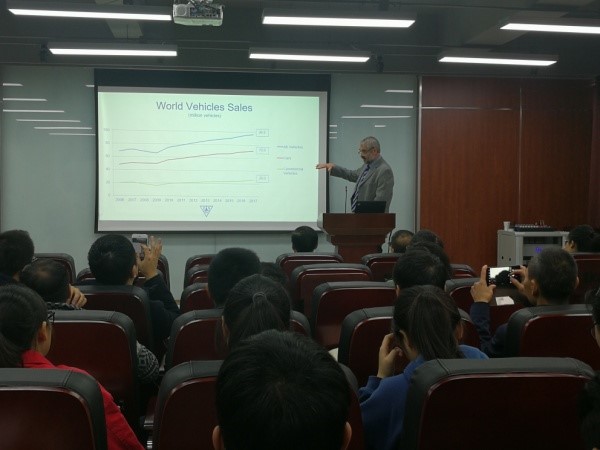 2018年11月6日,德国司马公司张建华一行来访,学院何有节院长、冯国涛副书记,以及生物质与皮革工程系副系主任程海明、轻化工程教研室主任但年华与司马公司协商本科实习基地以及本科生奖学金事项,会后张建华总经理作为校外专家为轻化工程高年级同学讲课。