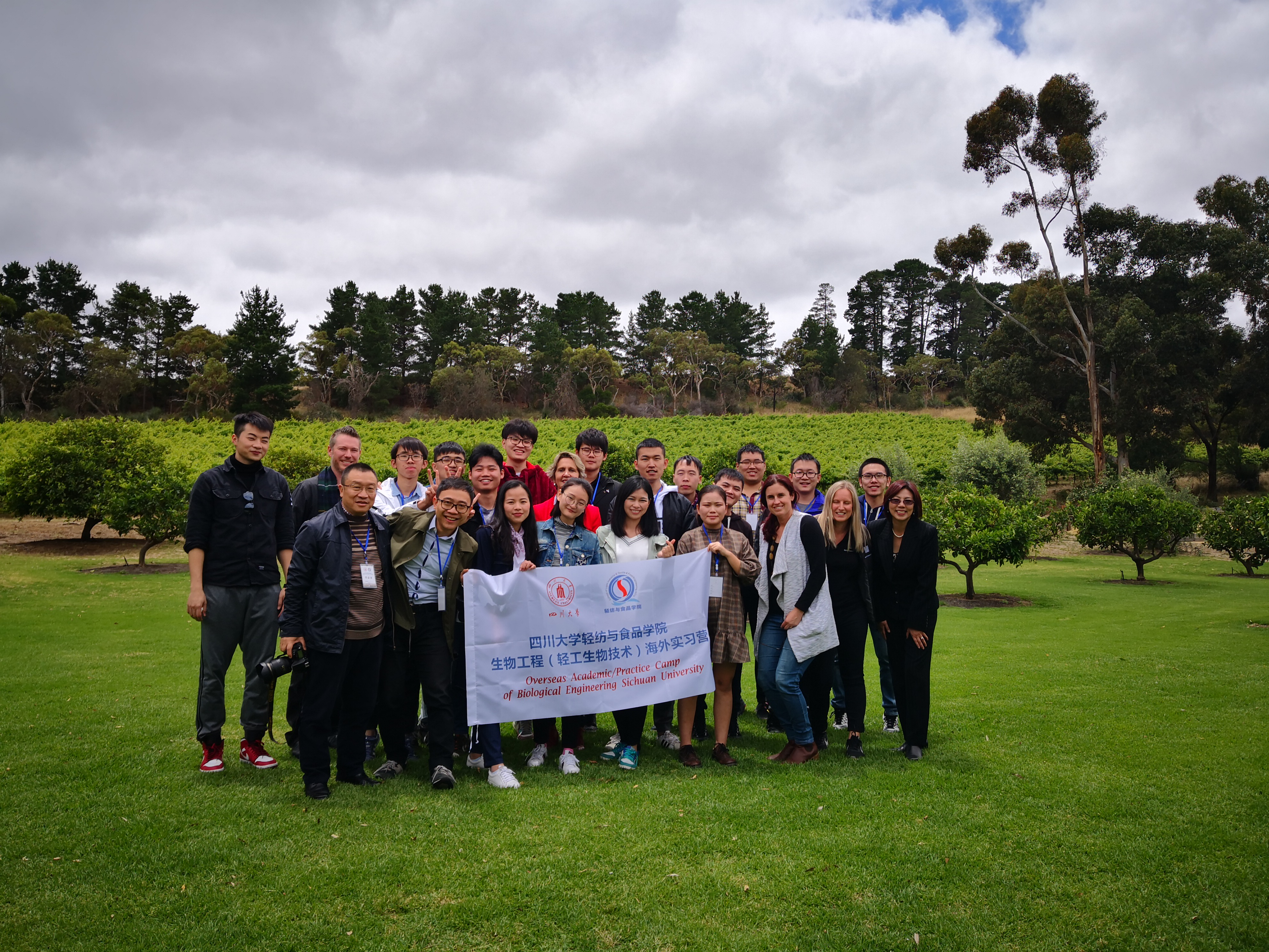 2018年11月25日到12月4日,轻纺与食品学院2015级生物工程(轻工生物技术方向)专业澳大利亚海外实习顺利进行。本次实习由生物工程专业周荣清老师和金垚老师带队,去到了位于南澳首府阿德莱德(Adelaide)的麦克拉伦谷(McLaren Vale)希拉谷酒庄(Shottesbrook)。