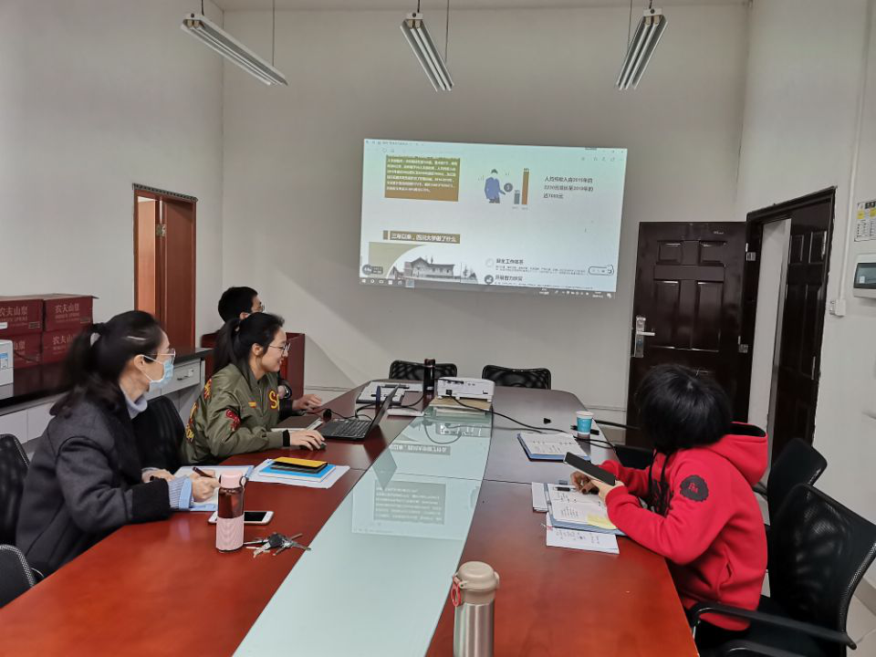 根据学校形势与政策课题组提供的基础课件,教研室结合学院专业特色与学院扶贫工作开展情况,学院2016级本科生辅导员王舒灏老师就《确保打赢脱贫攻坚战》专题进行说课和分享。经大家研讨后确定,此专题通过十八大以来的脱贫攻坚取得的成绩、我国在脱贫攻坚工作中的特点与经验、决胜脱贫攻坚应注意的问题三方面讲解。并在此基础上,融合学校、学院扶贫工作的开展并辅以具体事例讲解,如学校扶贫干部在四川凉山彝族自治州甘洛县挂职工作事迹、学院领导和院食品科技工作者组成的扶贫工作组到甘洛县斯觉镇实地调研,结合学院具备的专业技术能力和产品开发优势,开展智力支持和产业帮扶。大家也一致认为确定加入“作为新时代大学生,从自身可以为脱贫攻坚做点什么”的讨论环节,以我院每年暑期开展的到贫困地区支教的社会实践活动为例,激发新时代大学生的社会责任感。