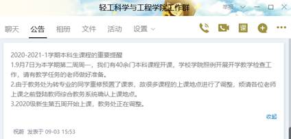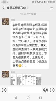 正式行课前一周,本科教务员通过短信、QQ群等方式提醒任课老师做好上课准备。通知各系教学系主任、教研室主任开展自查,督促任课老师做好新学期教学准备工作。学生辅导员及时统计学生到校情况,督促学生做好上课准备,学院本科教务员将不能按时返校的学生信息发送给相关课程老师,提醒老师做好相关学生的线上教学安排。